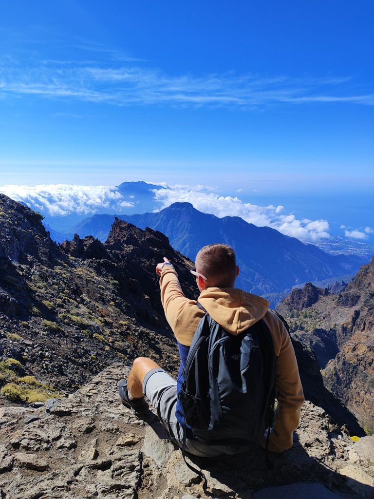 Jeśli trafisz na pogodny dzień z umiarkowaną ilością chmur, spektakl będzie bajkowy — z jednej strony wulkaniczny krajobraz i granitowe urwiska, z drugiej bezkresne chmury, a ponad nimi błękit nieba, czasem z odległymi sylwetkami innych wysp archipelagu.